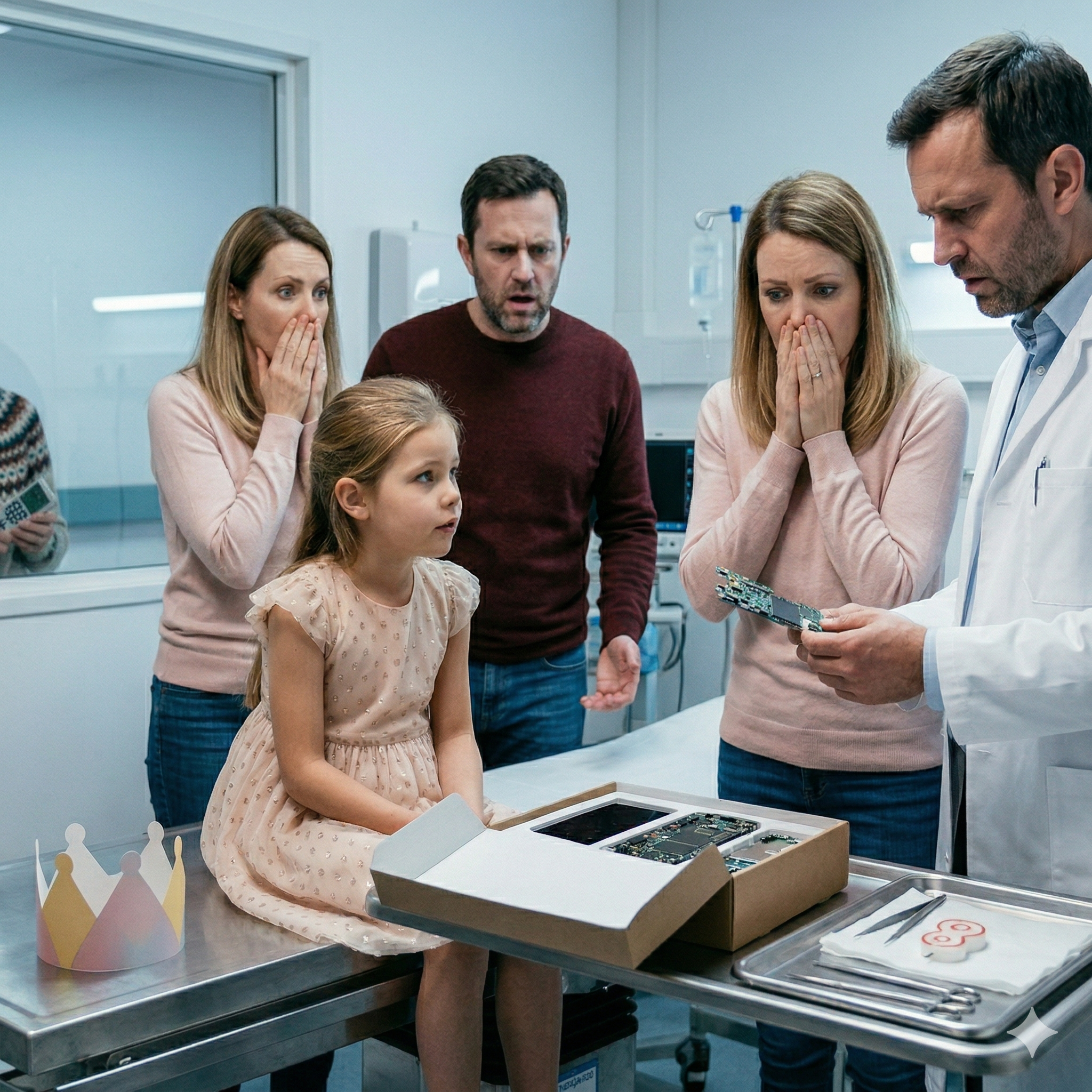 El festejo de 8 años de mi nena se volvió una carnicería emocional cuando el regalo de su abuela empezó a despedazarla por dentro. Esa noche, mi hija se retorcía con los ojos en blanco, enterrándose las uñas en la cabeza por el dolor tan perra. El doctor, temblando, me soltó la verdad: Este aparato es una trampa mortal diseñada para quemarle el sistema nervioso a la niña. Sentí que el mundo se me venía abajo al ver a mi propia madre tras el vidrio, con una sonrisa desquiciada y apretando un maldito control remoto, gozando de ver cómo se le escapaba la vida a su propia sangre.